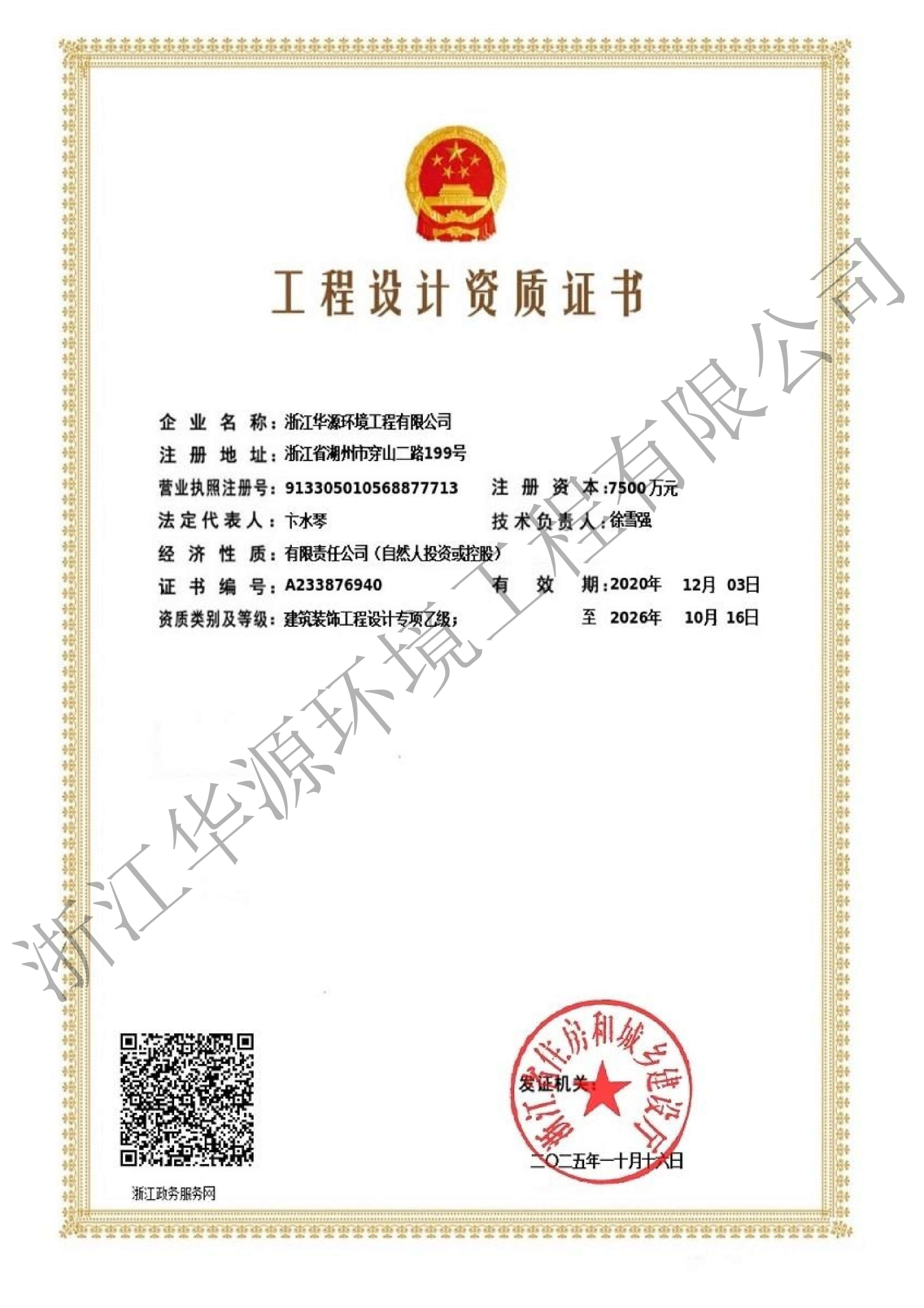 浙江华源环境工程有限公司_企业资质